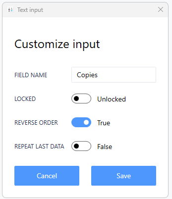 REPEAT LAST DATA: Field data automatically repopulates after printing