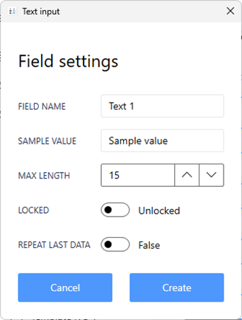 SAMPLE VALUE: Values displayed in Label Builder preview. It’s important to use data similar to what will actually be used.