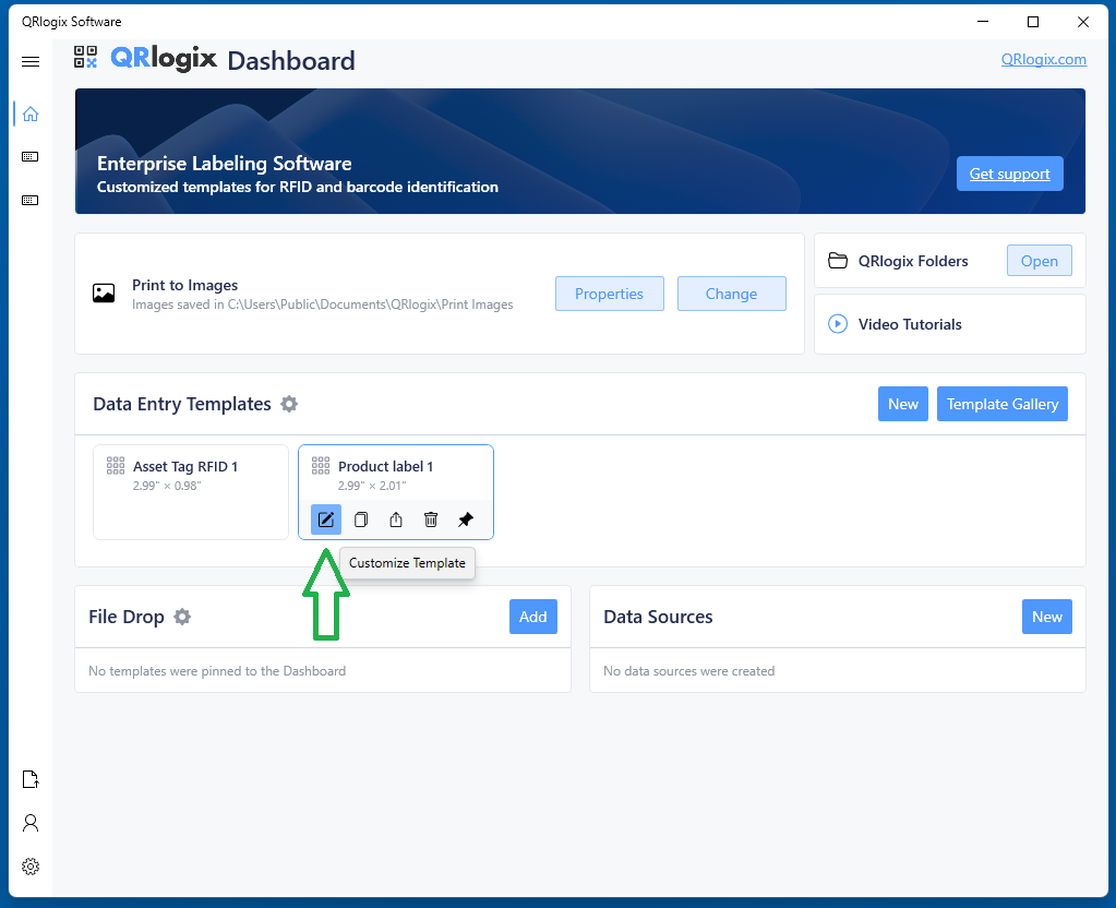 To access form builder, click the Customize Template icon below the template, located on the dashboard.