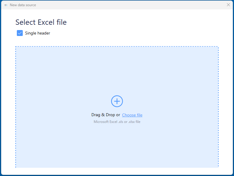 After defining header rows, select the file - drag and drop or navigate to the file and upload it.
