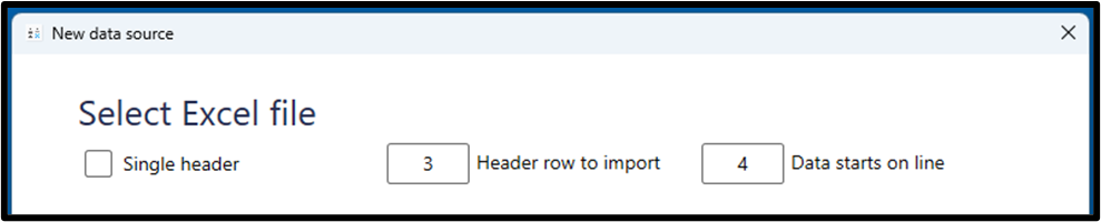 Next, define your header rows to ensure they are skipped over and data from the correct line is imported first.
