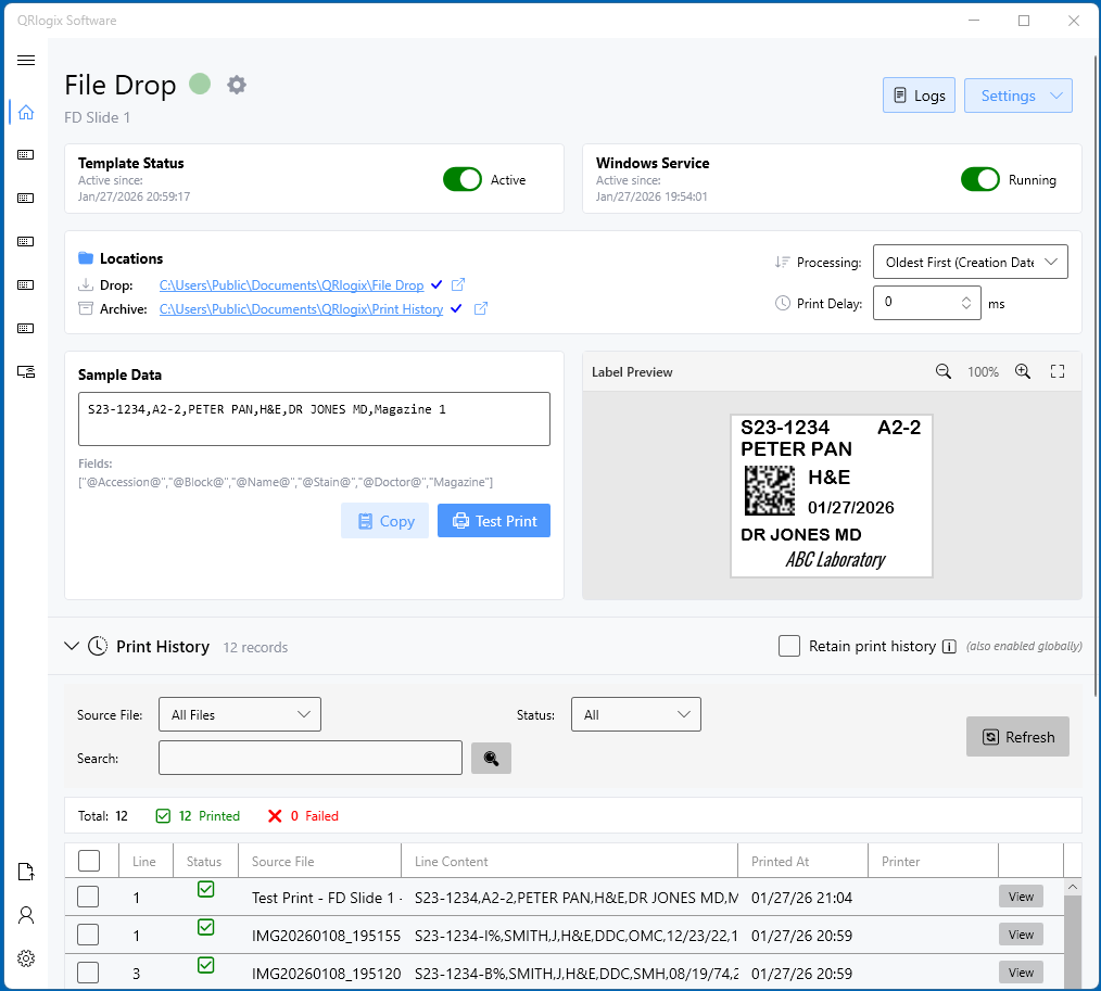 Example: C:\Users\Public\Documents\QRlogix\File Drop