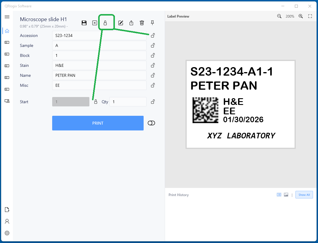 Locking form fields is a powerful workflow optimization feature that retains data between print jobs and allows the cursor to skip locked fields during data entry. This significantly speeds up repetitive labeling tasks.